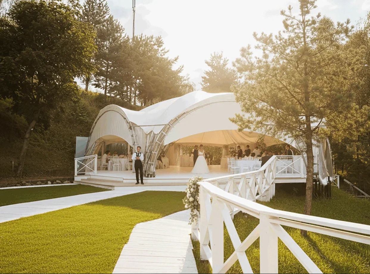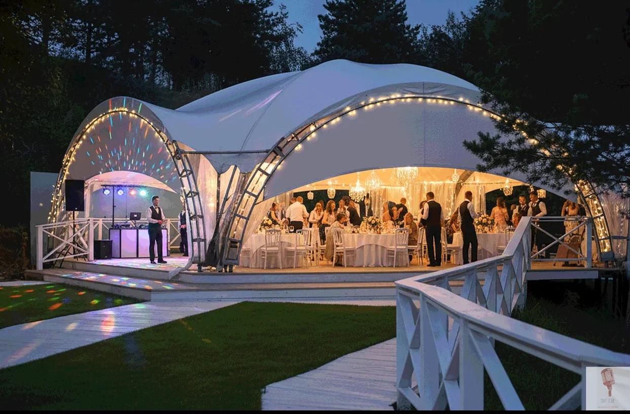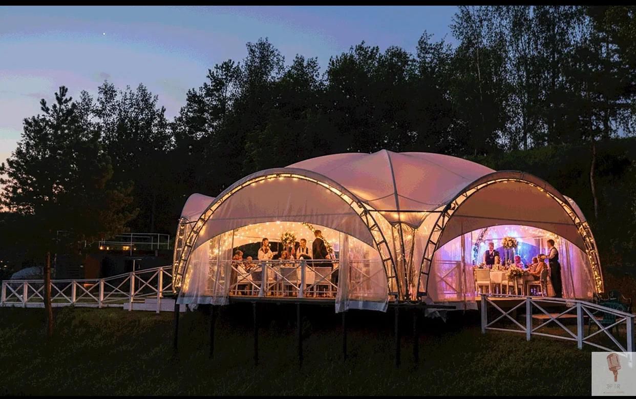 Панорамный шатёр на берегу Пироговского водохранилища. До 120 гостей, 20 км от МКАД, фотозоны и парковка. Идеально для свадеб, корпоративов, юбилеев и частных вечеринок.
